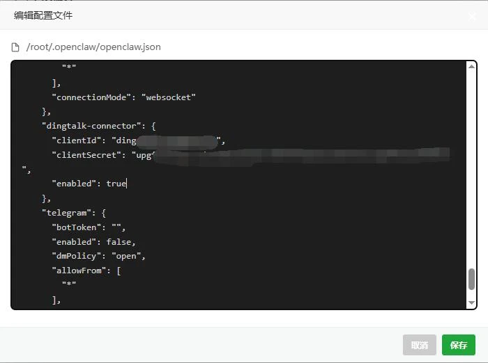 - 宝塔OpenClaw插件-服务管理-编辑配置