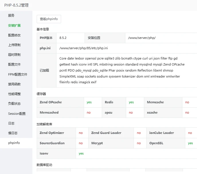 目前宝塔提供的版本是 8.5.2,据说最新的8.5.5对opcache又做了增强。